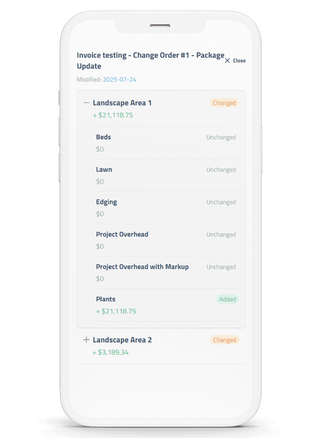 By being transparent and organized, you reduce the chance of disputes, maintain profitability, and present yourself as a professional who values clear communication. Because each invoice tells a complete story, it becomes a powerful tool for trust and accountability. For landscape construction companies that want to protect margins and keep projects running smoothly, Change Order Management is an essential tool.