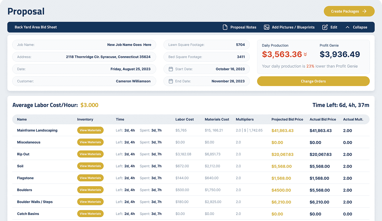 Set your income goals before the season starts. Our Profit Genie calculates your costs and markup, ensuring you hit your targets with every job.