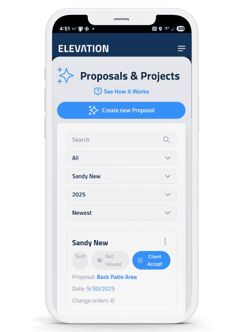 The Elevation Advisor mobile app is designed for busy landscape construction owners who need to make decisions in real time. From the job site, you can send or approve proposals, track budgets, and manage change orders without waiting until you get back to the office.